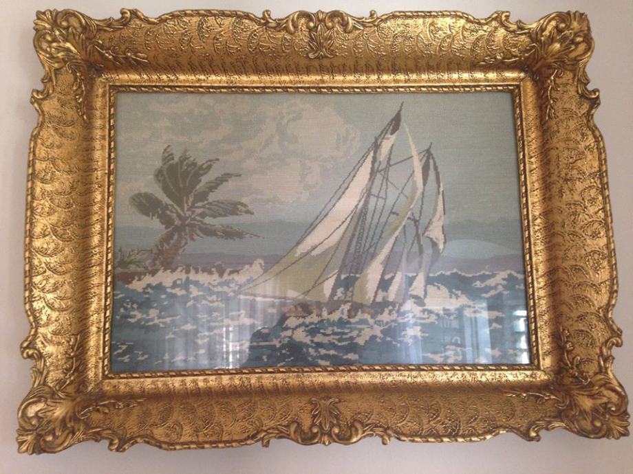 Ručno izrađen goblen brod u oluji- okvir je barokni stil super sačuvan