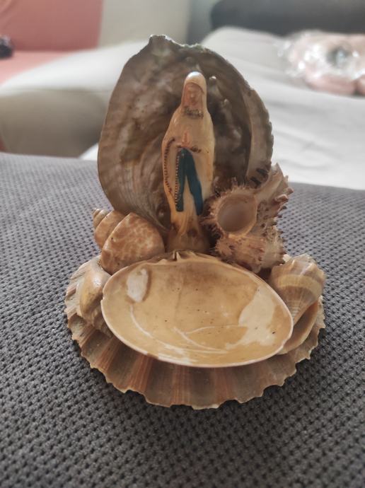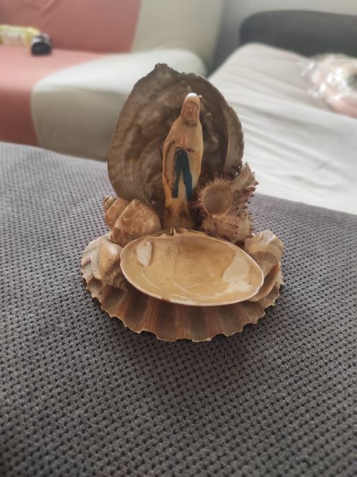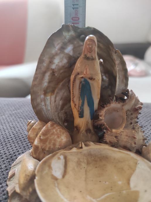 Unikatni suvenir sa otoka Brača,Gospa u molitvi ukrasena raznim školjkama,predmet je iz 60 tih godina.Za sve informacije nazovite na broj 097-6601365 ili pošaljite upit na Viber ili Njuskalo, a Šaljem Poštom ili Tiskom ili u dogovoru sa kupcem, stanje odlično,a predmet je Unikat i star preko 60 godina mjere su 10×10 .Vidi slike