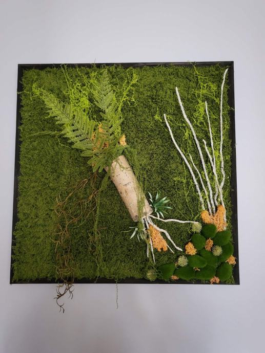 Mahovinu nije potrebno zalijevati niti zahtijeva posebno održavanje. Gotovo je bez težine, može stajati godinama, a ovakav zidni dekor unosi prirodni element u svaki enterijer.