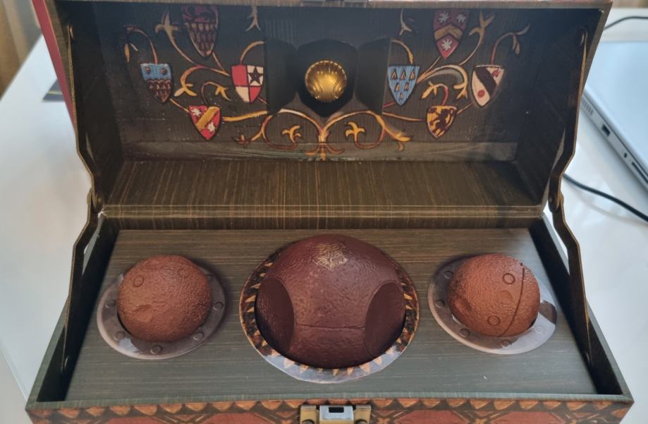 All packaged in a Quidditch trunk which doubles as a keepsake box, complete with metal closing latch