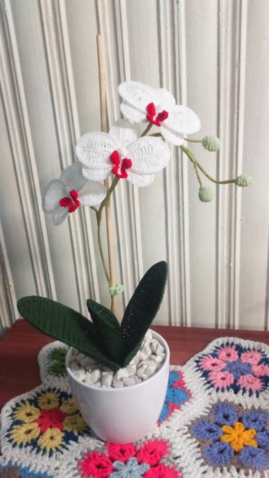 prodajem heklanu orhideju, ručni rad, visina 40cm, veliki izbor boja, u cijenu je uključena tegla, fb. Heklane orhideje Maja