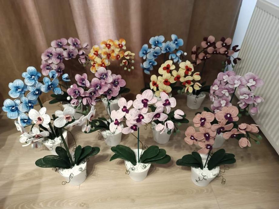 Heklane orhideje u tegli raznih boja visine cca 55 cm