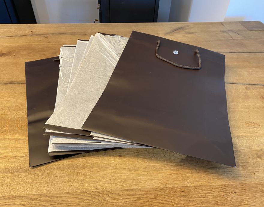 Die Papiertaschen können durch die Lagerung kleine Spuren haben.