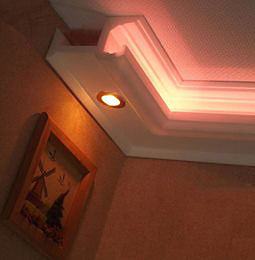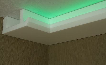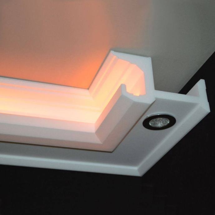 Alternativa skupim i dugotrajnim gips-kartonskim radovima za pripremu indirektne i ugradbene rasvjete Novi materijal - kompozitni bijeli XPS, velike tlačne tvrdoče i vrlo male težine.