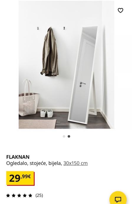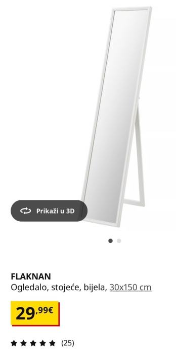 Ovo samostojeće ogledalo može se pomaknuti bez ostavljanja tragova na zidu. Savršen odabir za one koji žele vidjeti svoj odraz od glave do pete te vole bezvremenski izgled koji odgovara većini interijera.