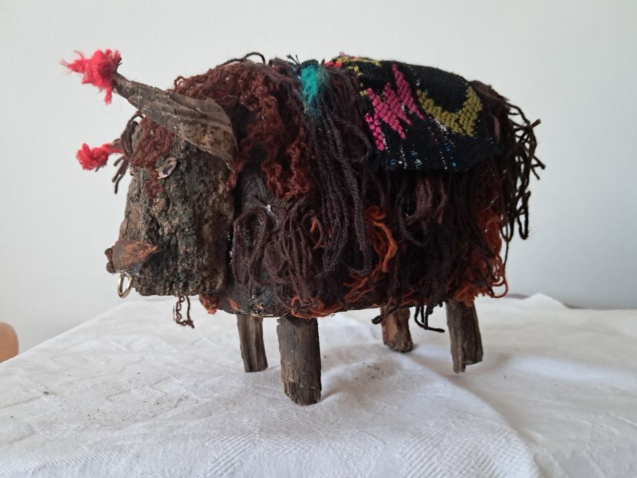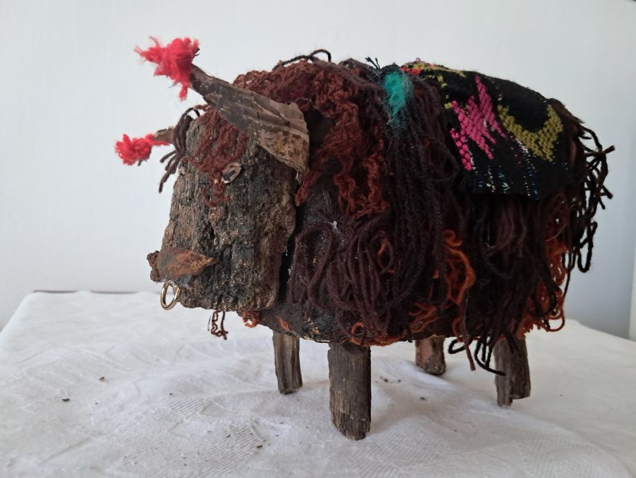 Ovaj jedinstven jak izrađen je od naplavina i ukrasa a koji upotpunjuju konačan izgled ovog unikatnog predmeta.Dimenzija je: 23×16 cm.