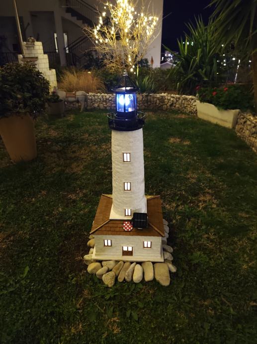 Na prodaju ručno izrađeni svjetionik od kamena. Visina cca.80 cm. Svjetla na solarno. Otporno na kišu. Cijena po dogovoru