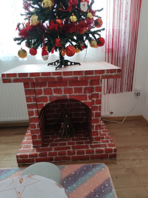 ručno rađeno, ima umjetnu tinjalu vatricu koja radi na struju. kamin ne šaljem zbog veličine, može se prikupiti u Osijeku.