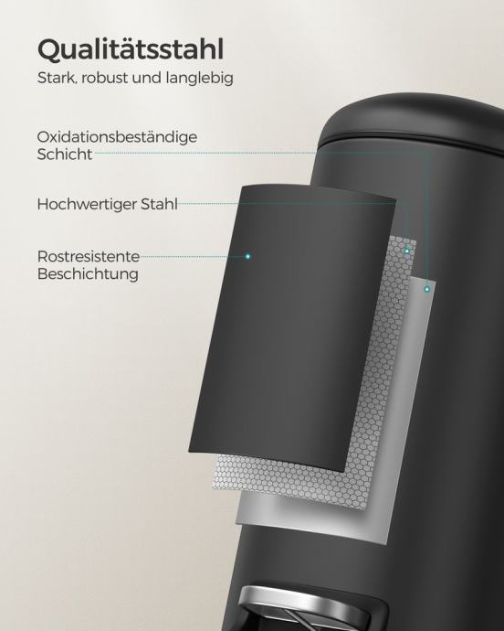 Sa svojim kompaktnim dimenzijama od 34,5 x 18,5 x 39 cm, ova kozmetička kanta od 10 litara savršeno se uklapa u male prostore. Nudi dovoljno prostora za vaše smeće, au isto vrijeme zauzima samo malo prostora. S poklopcem koji se lagano zatvara, spremnik za kozmetiku se tiho i nježno zatvara bez naglog zatvaranja. Poklopac se može ostaviti otvorenim kako biste lako mogli odložiti otpad kada je kupaonici potrebno dulje čišćenje. Ova kanta se lako otvara pritiskom na papučicu - što vam omogućuje da svoje smeće odložite higijenski i bez upotrebe ruku. Izrađena od čelika otpornog na hrđu, tanka kanta s poklopcem koji čvrsto prianja, vodootporna je i osigurava da unutrašnjost ostane suha. Idealan za vašu vlažnu kupaonicu ili toalet. Unutarnja kanta može se podići pomoću bočnih ručki tako da je možete jednostavno isprazniti i očistiti. Zahvaljujući ručki na poleđini, kanta se lako prenosi. Za sve informacije nazovite na broj telefona 092/399-75-19