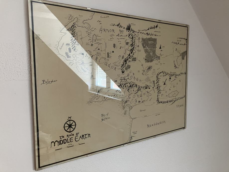 Prodajem kartu Međuzemlja (Middle-Earth), ručno rađena. Dimenzije 70x50 cm. Uz kartu dolazi i stakleni okvir.
