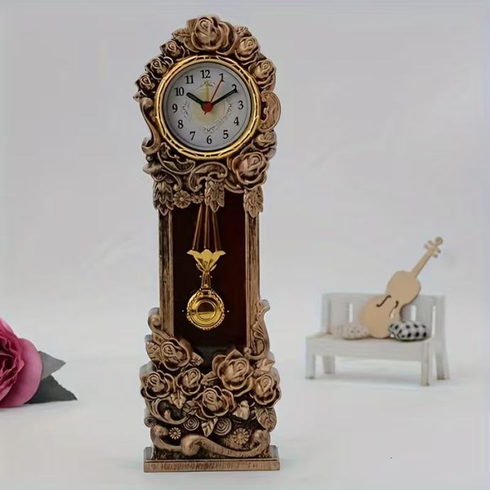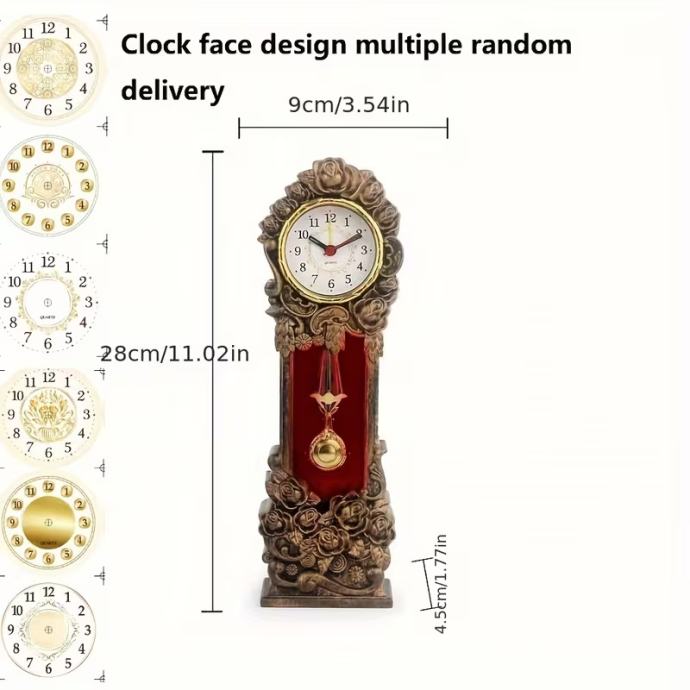 Klasični stolni kvarcni sat s dizajnom ružičastog tornja, stolni sat u vintage stilu za spavaću sobu, radnu sobu, policu za knjige, dnevni boravak, ukras uredskog ormarića - brojčanik s nasumičnim uzorkom, bez baterije