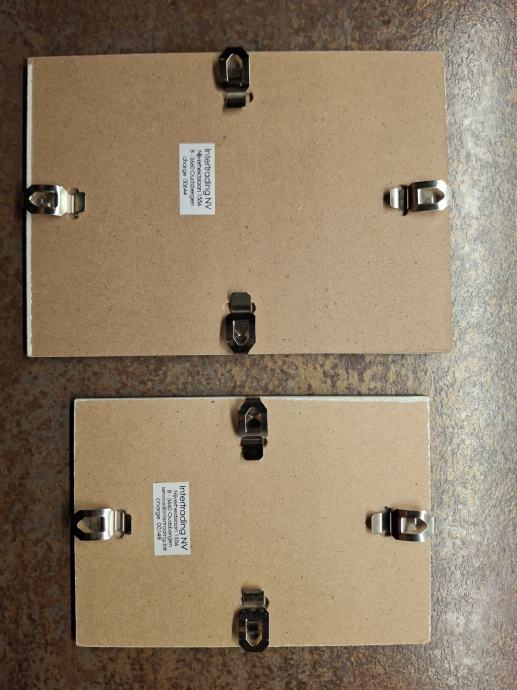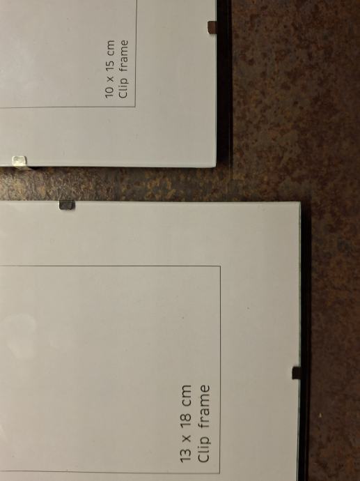 2 okvira za slike, klip sistem, 13x18 cm, 10x15 cm, staklo, Lesnina, bez oštećenja.