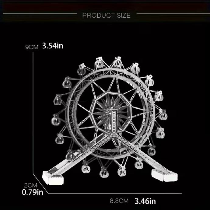 Komplet modela metalnog panoramskog kotača, 3D slagalica, željezna igračka, kreativna rotirajuća replika zabavnog parka, ukras za stol, idealno za božićne i Noć vještica poklone, svečane dekoracije, blagdanski pokloni, ukrasni ukras, rotirajuća replika, preciznost