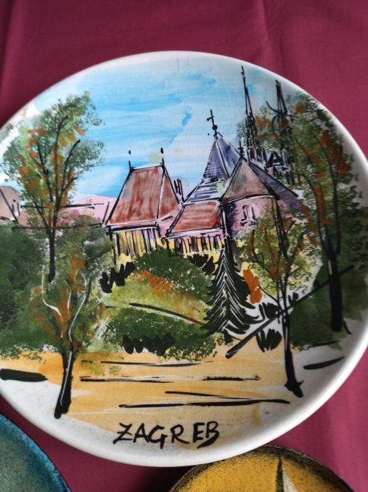Motiv Zagreba ručno oslikan na keramičkom tanjuru.