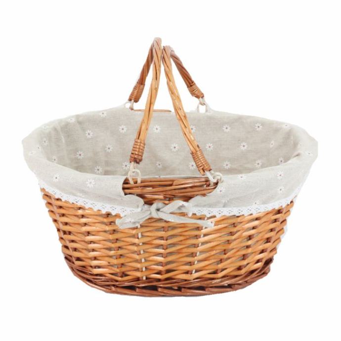 KOŠARA PLETENA OVALNA NATUR S PREKLOPNIM DRŠKAMA I PLATNOM 38x29x18 cm