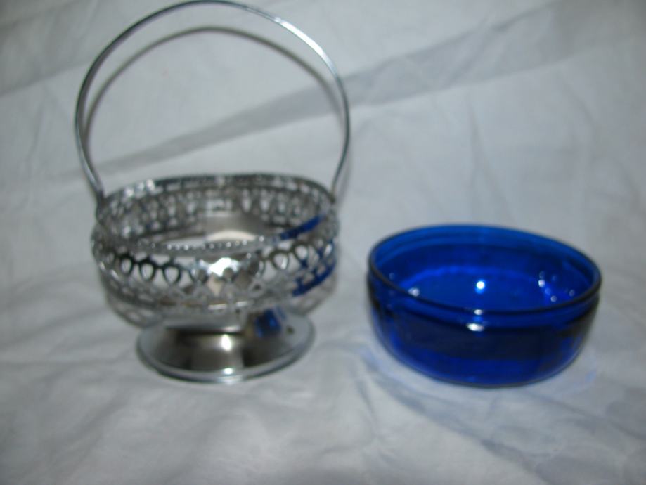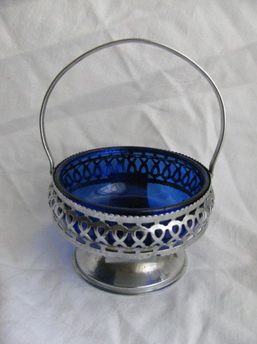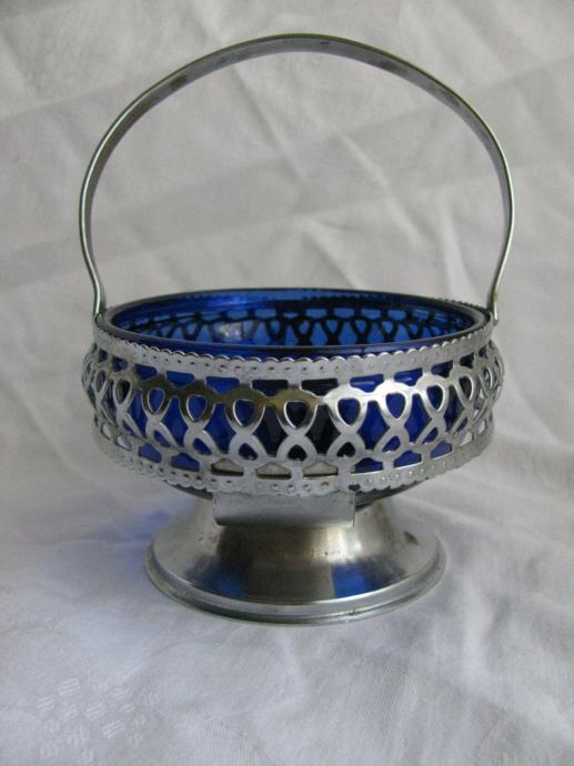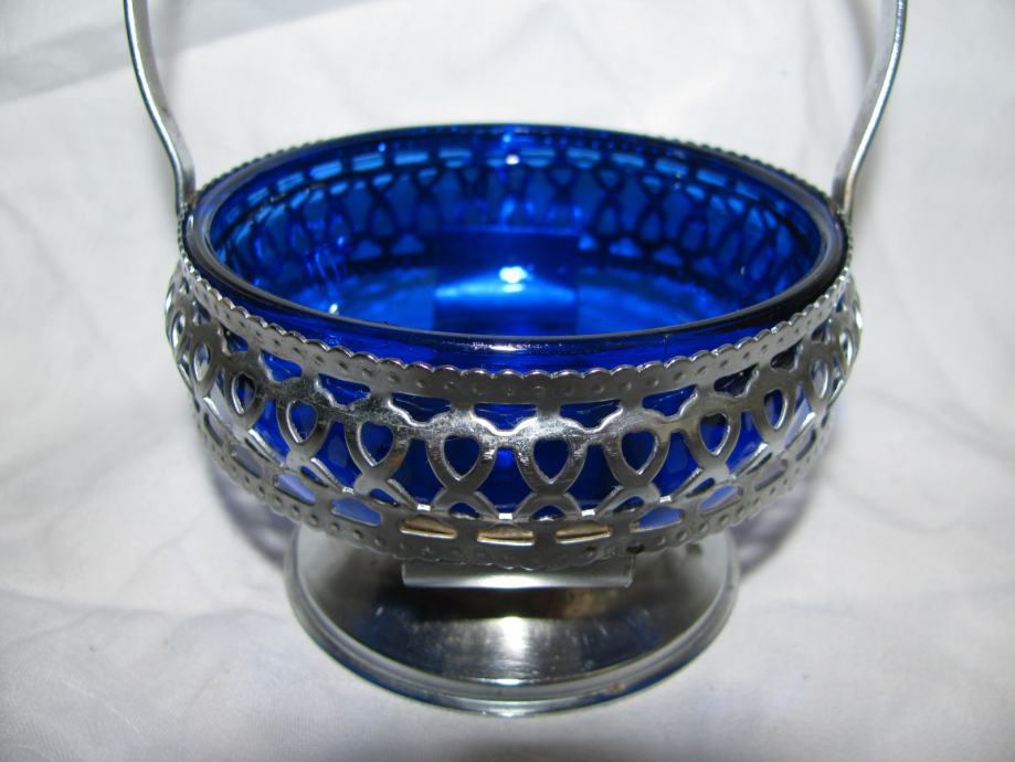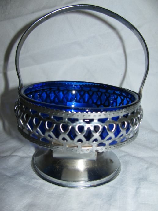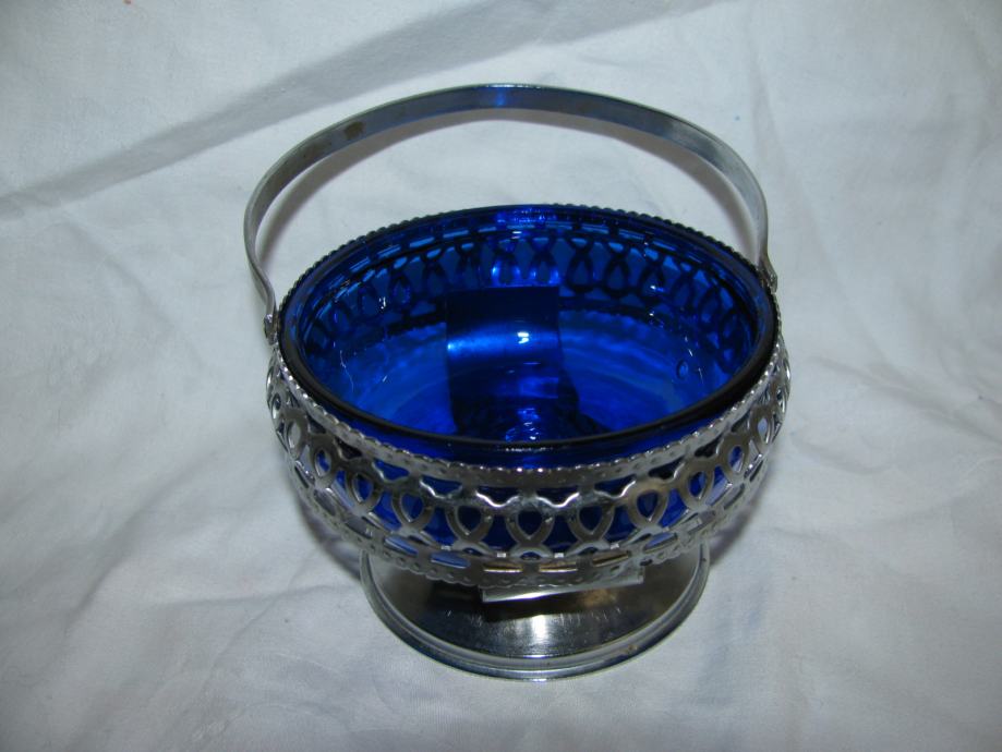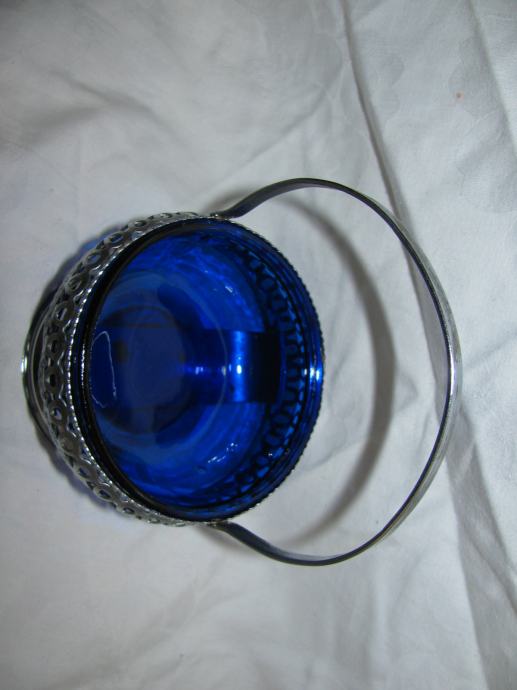 Metalna košarica, preklopna ručka, plavo staklo.