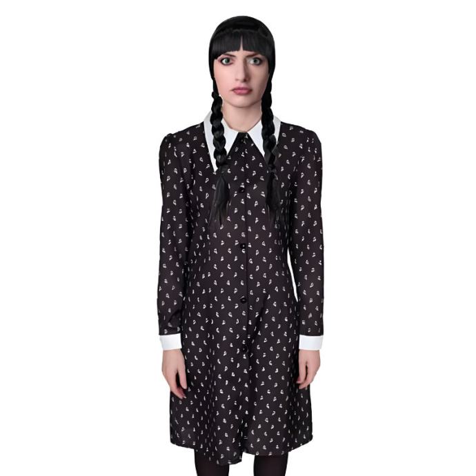Jedinstveni stil: Wednesday Addams kostim prepoznatljiv je po svom gotičkom, elegantnom i minimalističkom dizajnu. Idealan je za one koji žele izražavati individualnost ili ljubav prema klasičnoj "Addams Family" estetici.