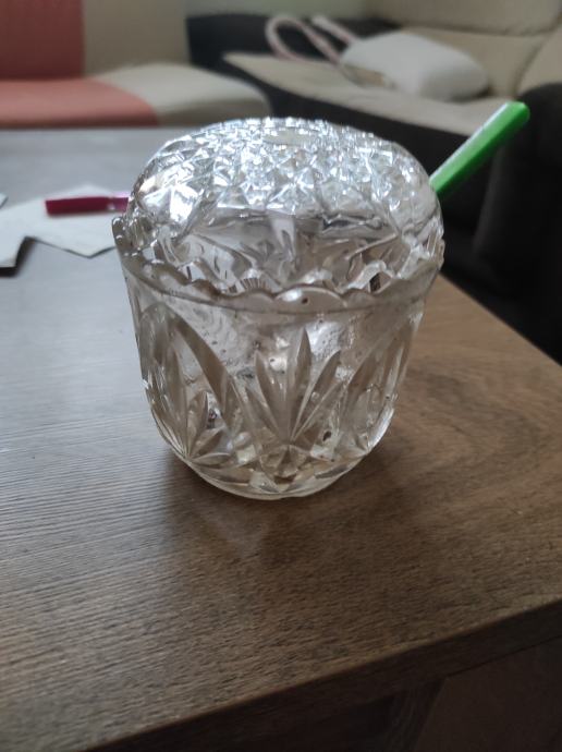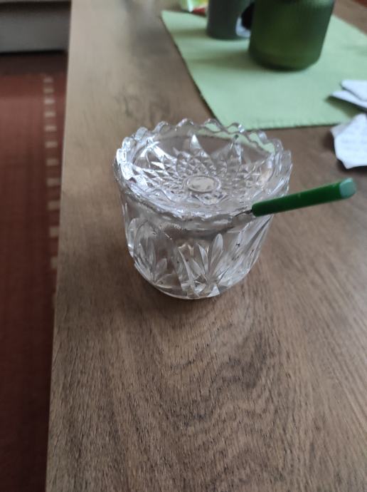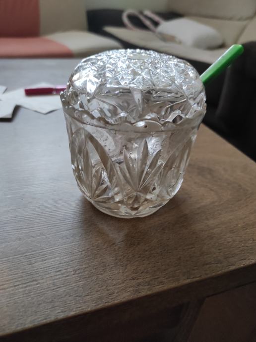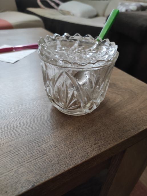 Kristalna zdijela za šečer ili za nešto sl,mozda za ukras?,stara preko 80 godina, kupac dobije i čajnu žlicu sa slika.Za sve informacije nazovite na broj 097-6601365 ili pošaljite upit na Viber ili Njuskalo, a Šaljem Poštom ili tiskom ili u dogovoru sa kupcem.Visoka 8 cm, a promjera 10 centimetara.Stanje odlično,Vidi slike!!