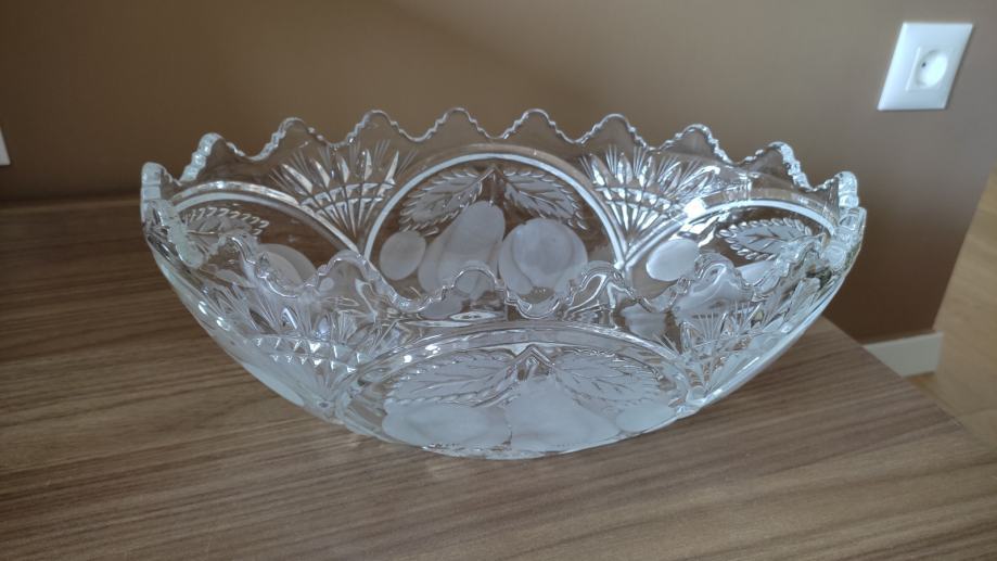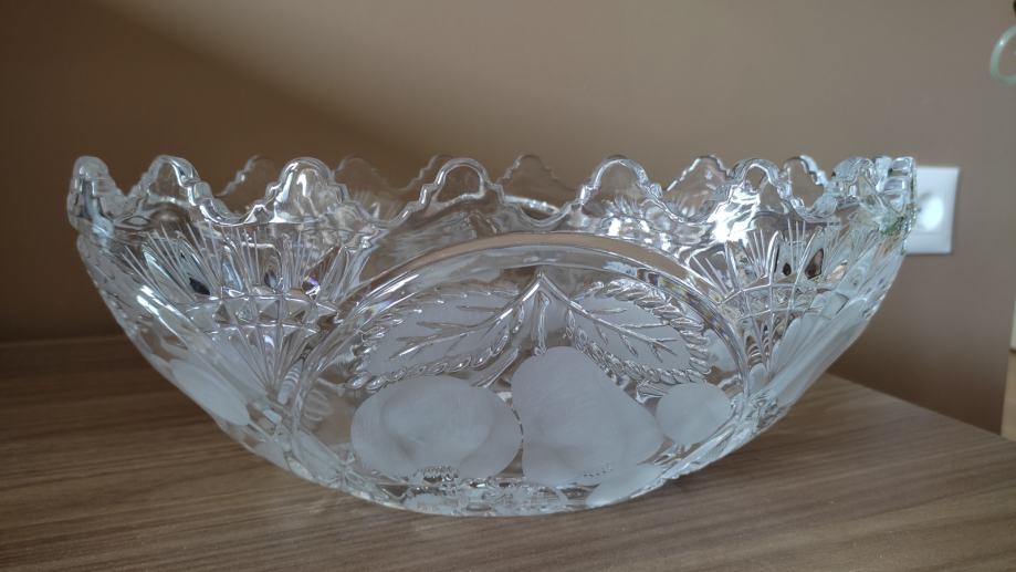 Velika kristalna zdjela sa motivom voća. 30x18x13 cm.