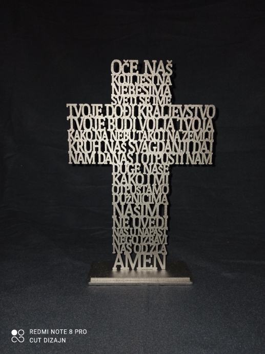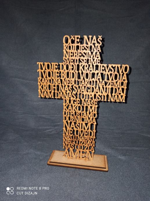 Križ sa molitvom Oče naš u dimenziji 30 x 20 centimetara u dvije verzije, postolje samostojeće ili sa kukicom za objesiti na zid.