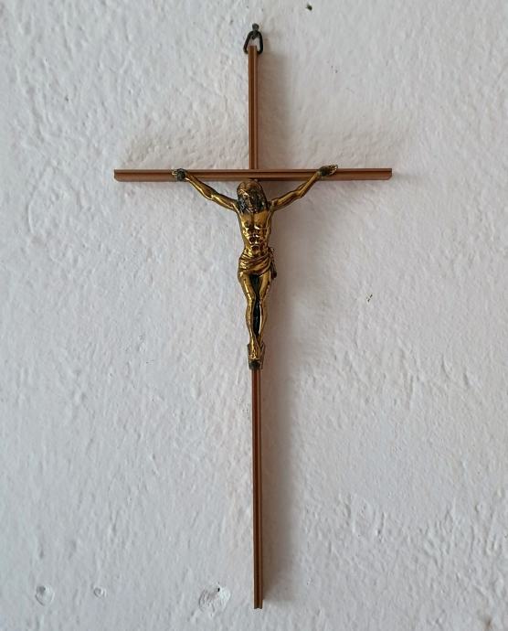 Krasno profinjeno i elegantno raspelo dimenzije 25 cm x 12,3 cm ispupčene prema vani 3 cm mesing