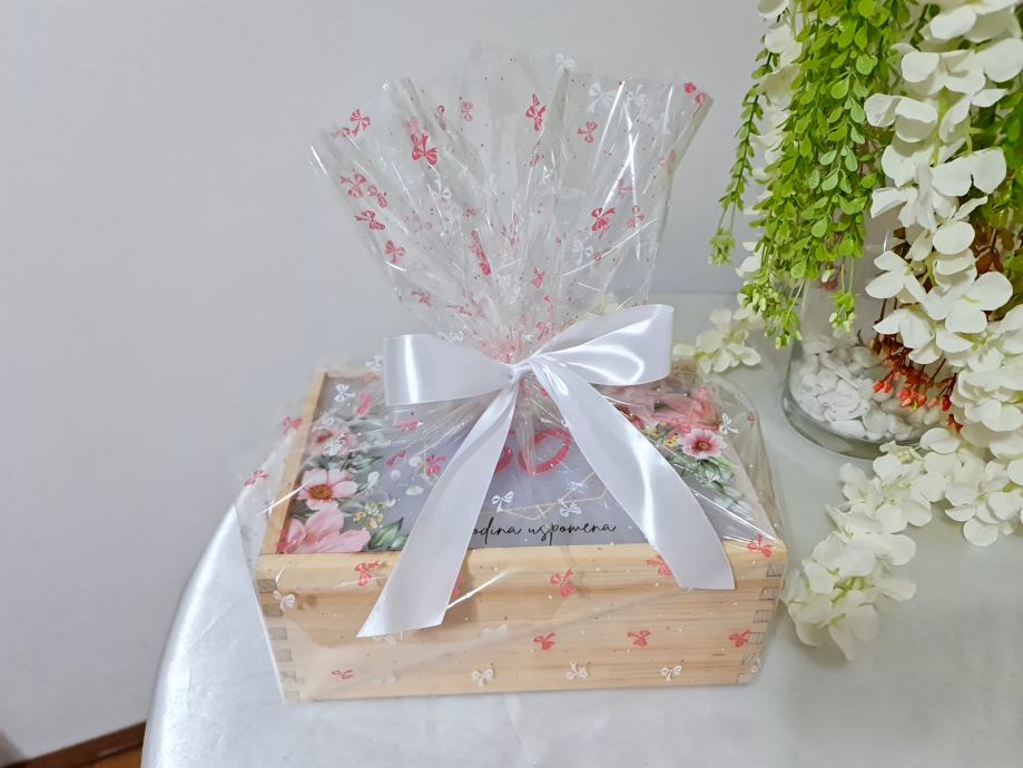 Poklonite savršeni poklon u prekrasnoj drvenoj kutiji s personaliziranim poklopcem od pleksiglasa.