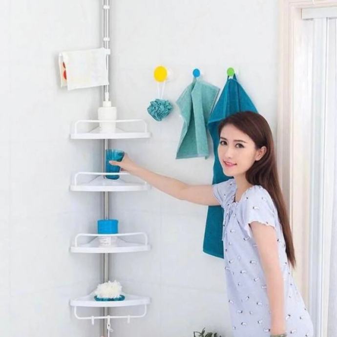 Teleskopski kutni element univerzalno je primjenjiv bilo u tušu, u kutu kade ili u kutu kupaonice. Teleskopski štap sa četiri plastične police pruža idealno mjesto za odlaganje šampona, sapuna i spužve.