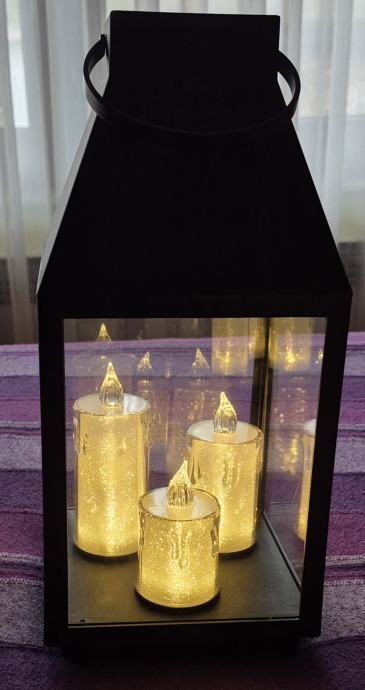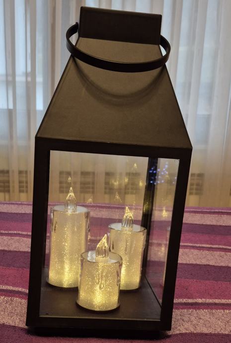 Sa tri led svijeće koje daju dojam pravog gorenja, tinjajući