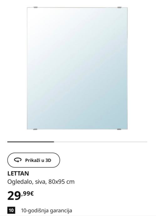 Ogledalo čini kupaonicu prostranijom. Ima i sigurnosni filmkoji sprečava pucanje staklai štetu.