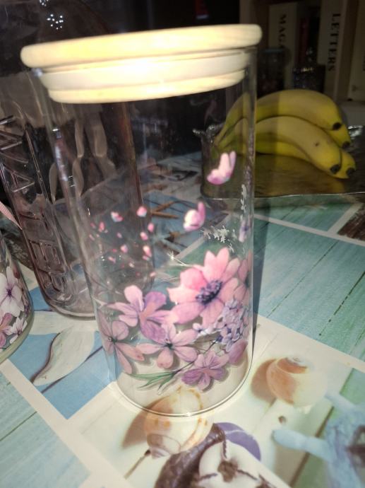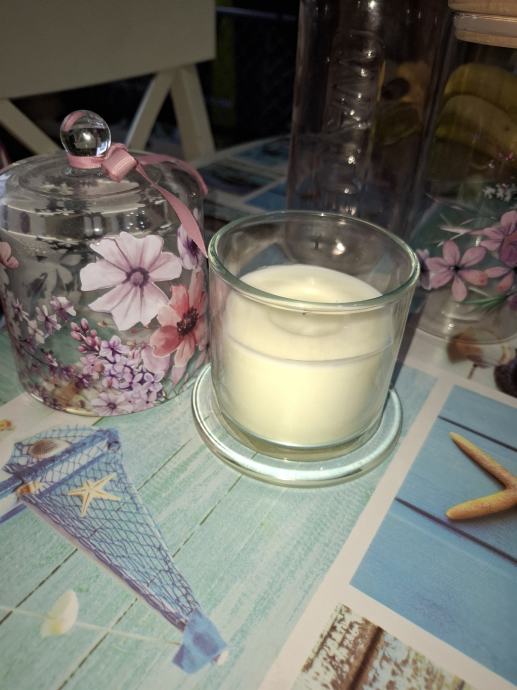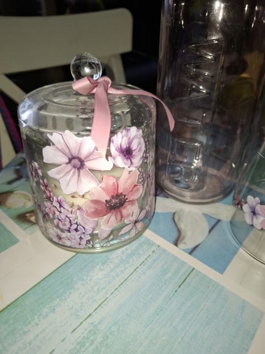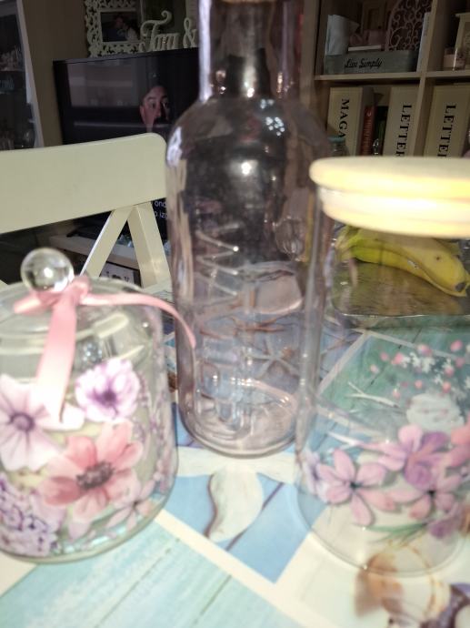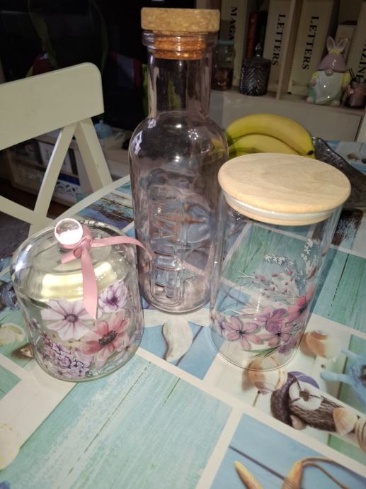 Lot posuda za npr. šečer, boca za vodu od 1l i svijeća