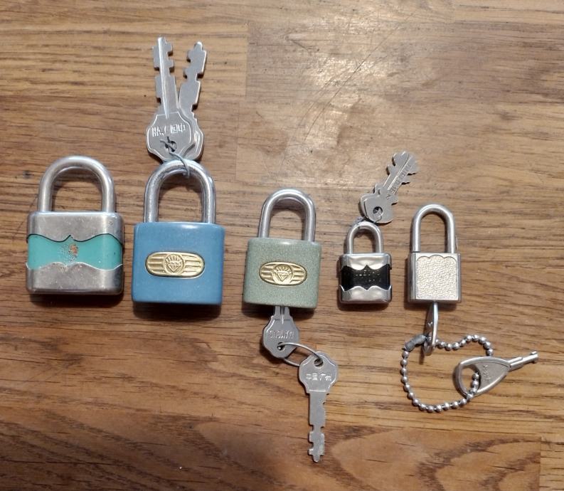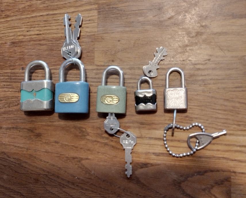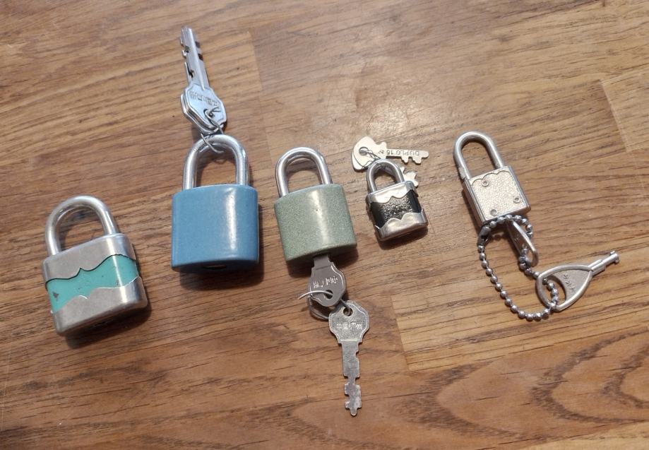 Usporedbe radi plavi 5.1cm x 3.2cm x 1.6cm.Četiri imaju ključeve a peti ne.Cjena za sve zajedno 7e-slanje nakon uplate predmeta na račun