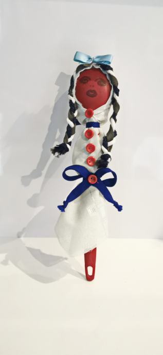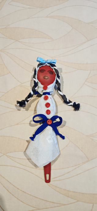 Lutka na crvenoj gumiranoj kuhači - unikat - ručni rad
