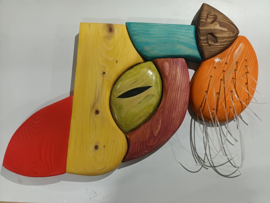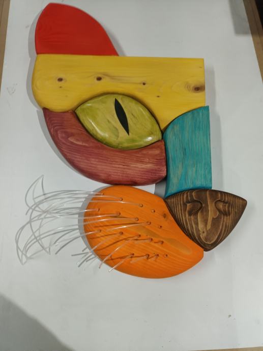 Dekoracija za zid u obliku mačke izrađena od drva. Visina 80cm debljina 4.5 cm.
