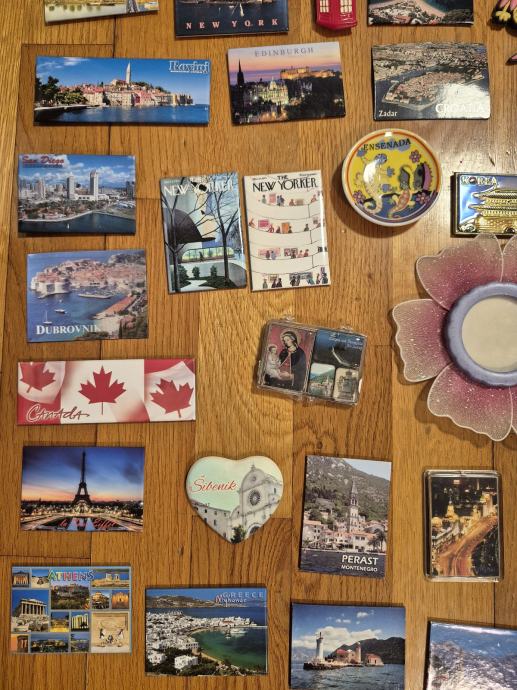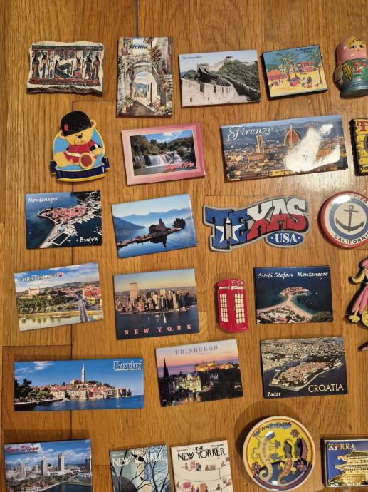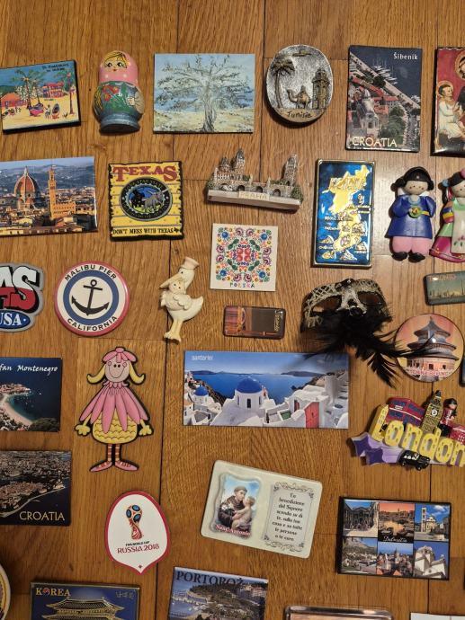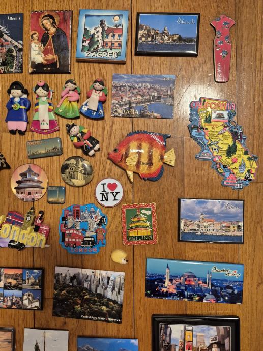 Prodajem veliku kolekciju suvenirskih magneta s raznih destinacija širom svijeta. Radi se o više od stotinu komada koji pokrivaju mnoštvo lokacija – tu su magneti iz hrvatskih gradova ali i oni iz inozemnih destinacija kao što su New York, Texas, Edinburgh, Firenza, Kanada, Kina, Egipat, Južna Koreja i mnoga druga mjesta.