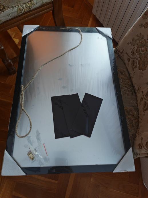Prodajem novu magnetnu ploču dimenzija 40x60cm sa drvenim okvirom. Uz ploču dolaze tri magnetne naljepnice kojima se ploča može montirati na zid. Cijena je 25e.