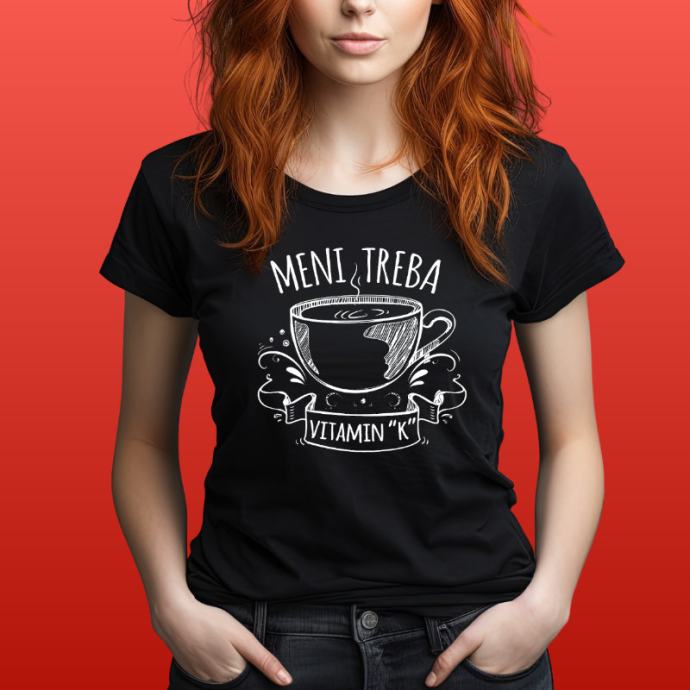 Šaljiva poklon majica namijenjena je ženama i ima humorističan natpis "Meni treba vitamin K". Ovaj natpis može biti interpretiran kao duhovit način izražavanja potrebe za "vitaminom K", gdje K može simbolizirati komponentu smijeha ili sreće.
