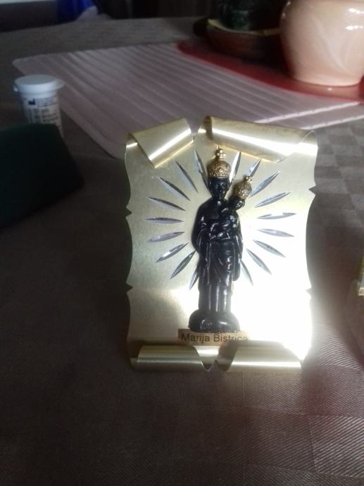 Majka božja bistrička, materijal : kamen i na mesing, duž=15cm, 1 kom= 5 eur, vidi slike! mt(1 rega unten)
