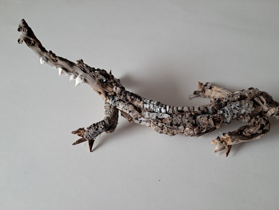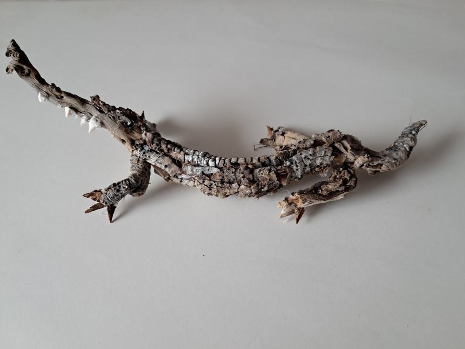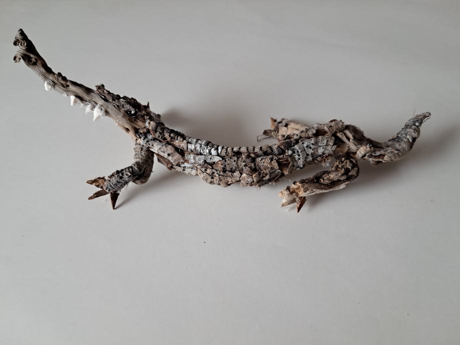 Ovaj simpatičan krokodil izrađen je od komada morske naplavine, koji me gledajući u nju izgledom podsjetio na krokodila.Dimenzija je:22 × 8 cm.