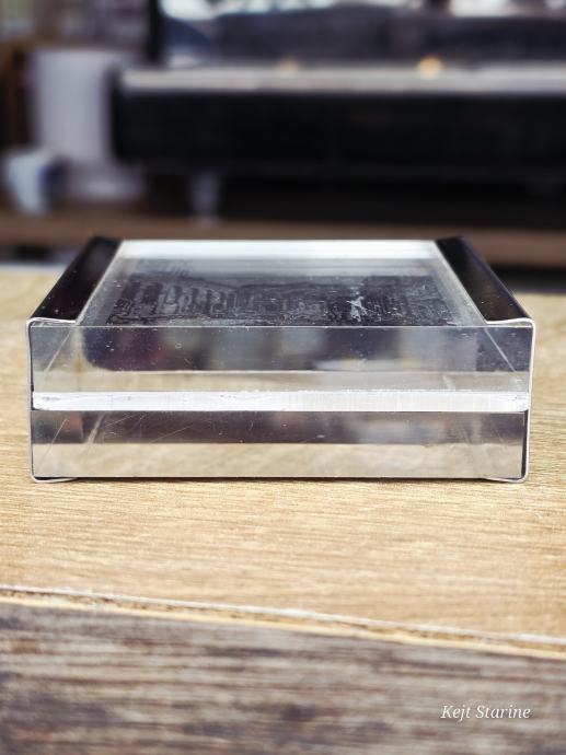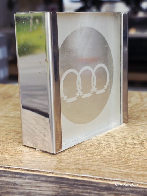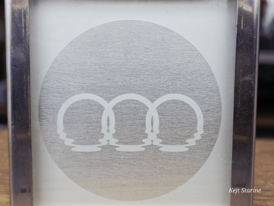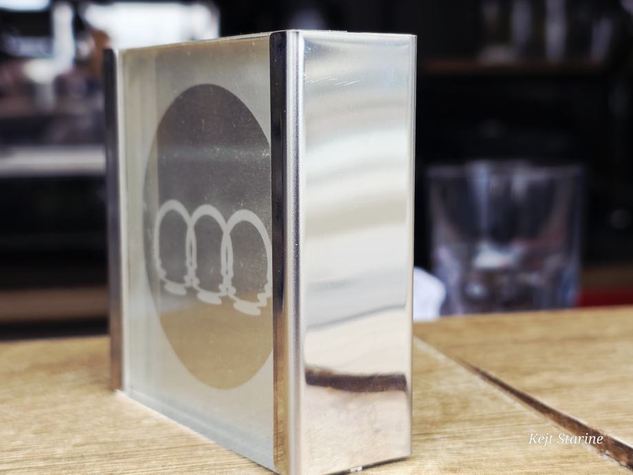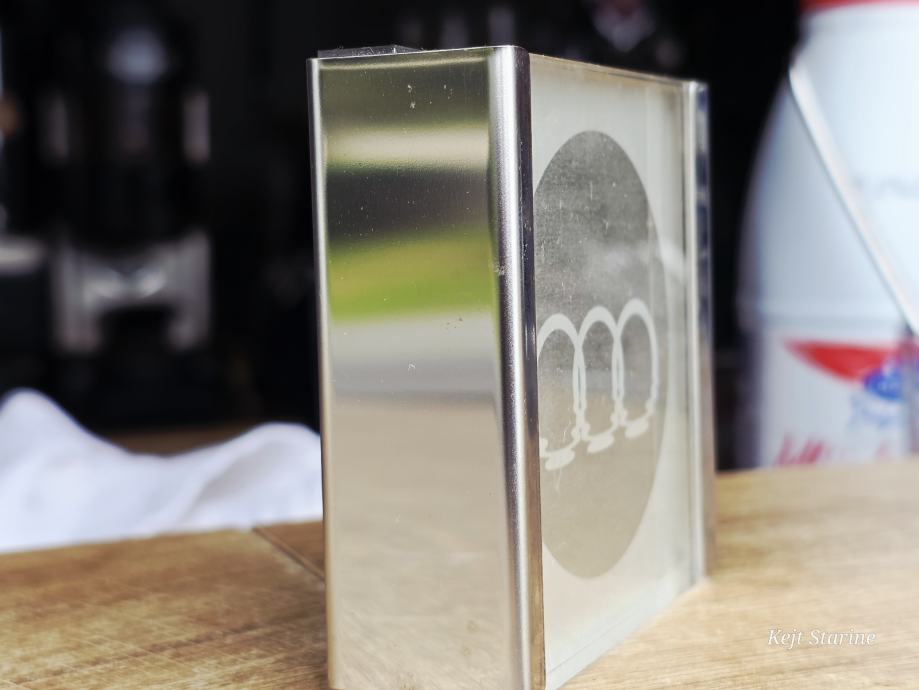 Materijal: Izrađena je od akrila s kromiranim bočnim rubovima, a logotip je često urezan ili otisnut unutar prozirnog tijela.