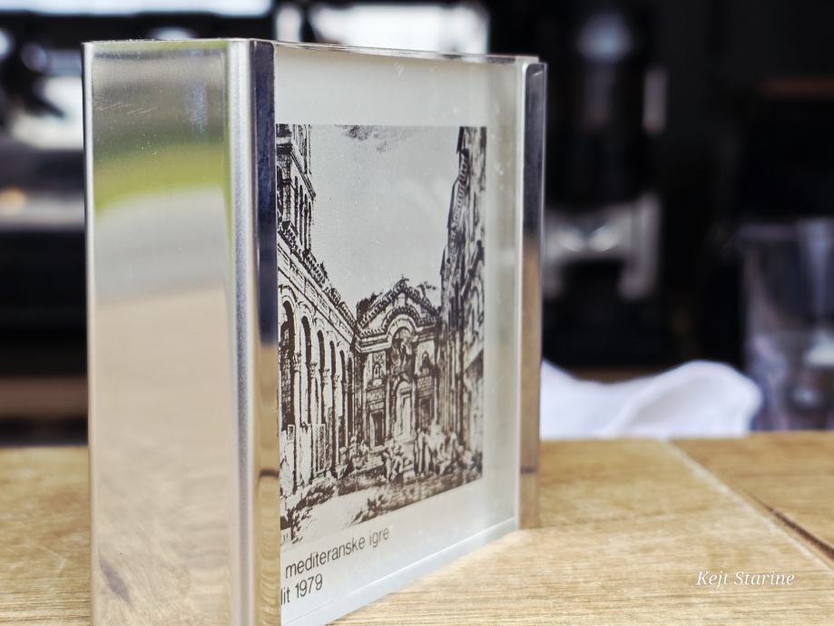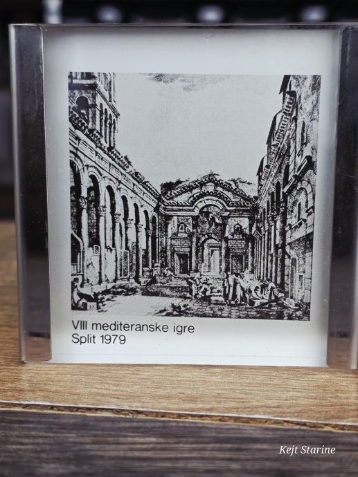 Službena akrilna plaketa (uteg za papir) izdana povodom VIII. Mediteranskih igara (MIS '79) održanih u Splitu 1979. godine.