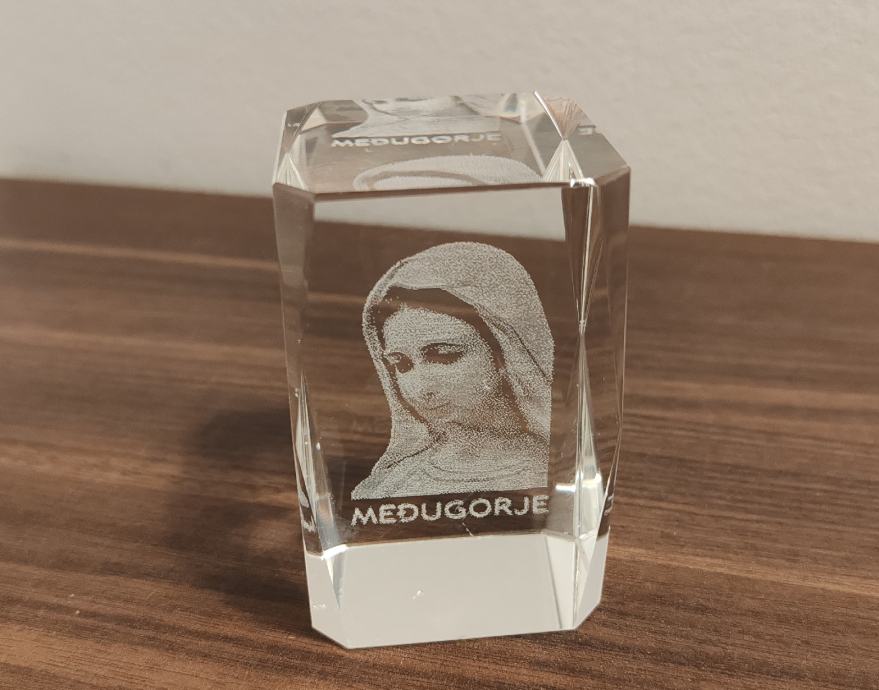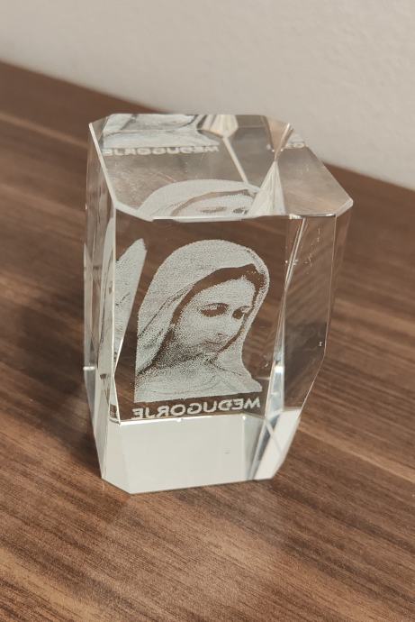 Međugorje Gospa Kraljica mira - 3D Gravura u staklu.