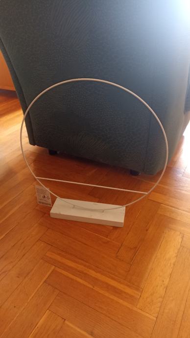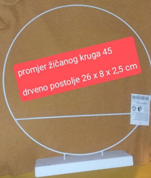Obruč je metalni, postolje drveno, bijelo.