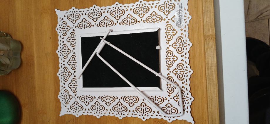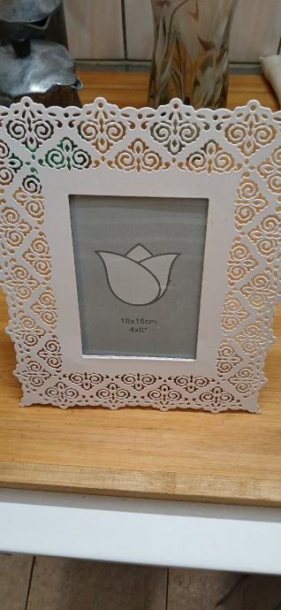 Metalni novi samostojeci okvir cca dim 24x20 cm a otvor za sliku je 10x15 cm.može slanje posta tisak