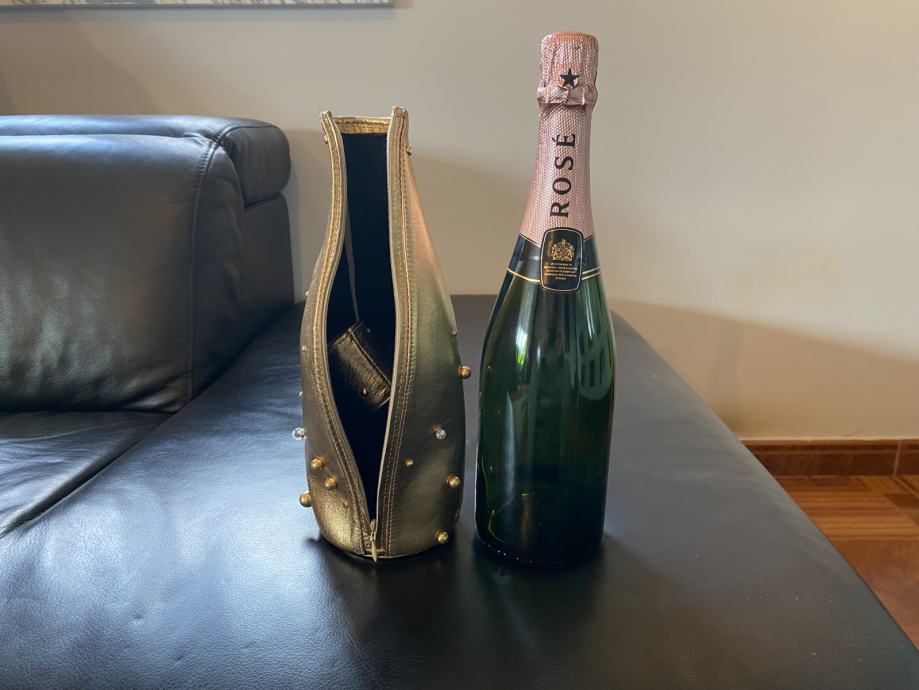 Moet & Chandon Champagner - Ice Jacket Gold - Flaschenkühler Gold - Kühltasche Gold für 0,75L Flasche inkl. Dekoflasche Rose 0,75L leer - Dummy Bottle