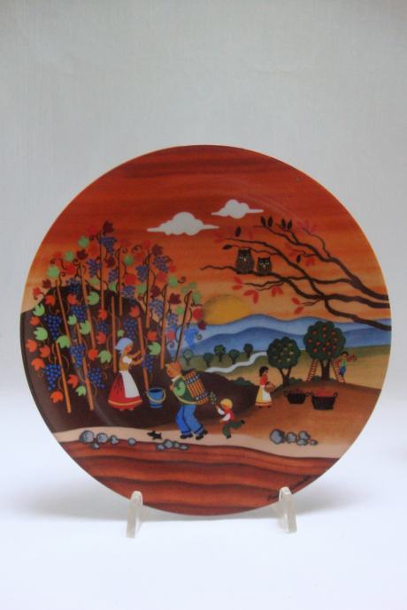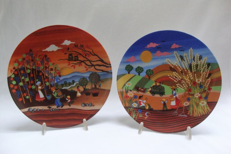 Krasni kolekcionarski dekorativni tanjuri ručno oslikani 1960. godine slikarica Barbara Furstenhofer