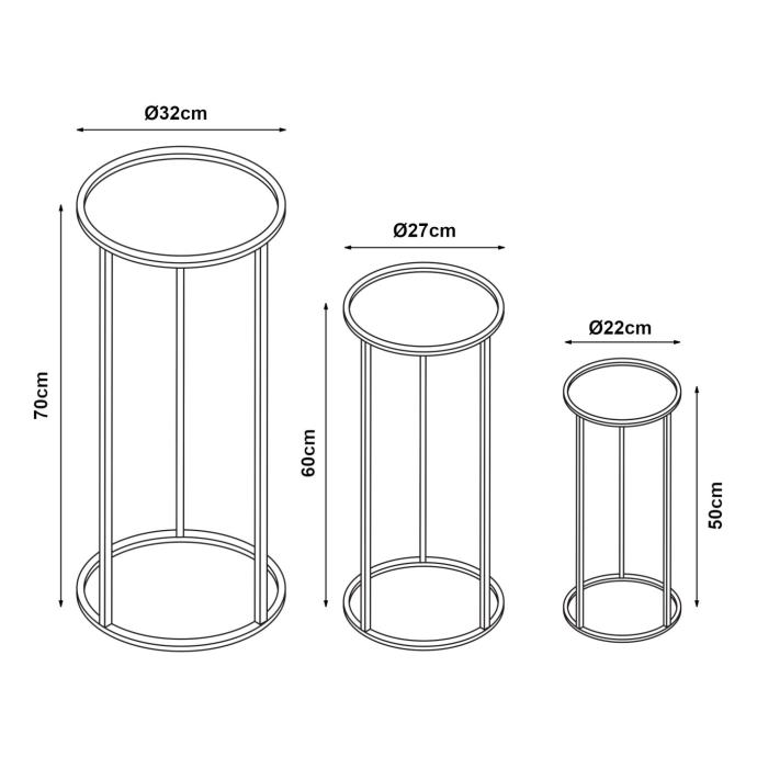 Set se sastoji od tri stalka za biljke različitih veličina. Oni su savršeno rješenje za vješto izlaganje vaših omiljenih biljaka.