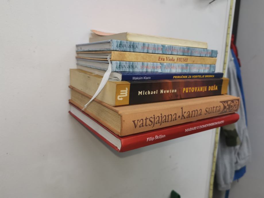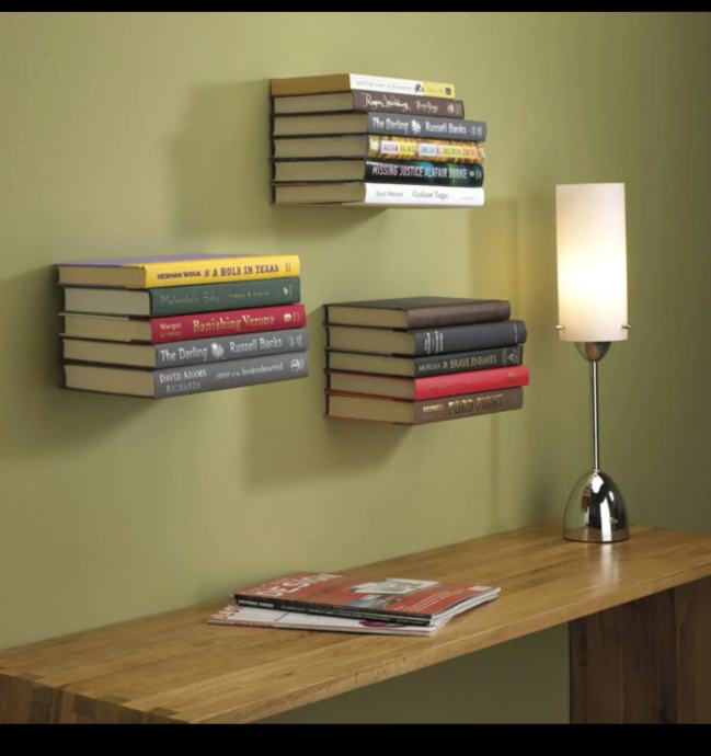 Nevidljiva polica za knjige, Set od tri police, 20 eura. Jednostavna monztaža. U cijeni i vijci za montiranje i upute. Video u prilogu.