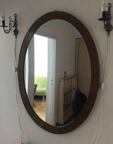Originalno art deko ogledalno sa okvirom od orahovine, veliko, ovalnog oblika