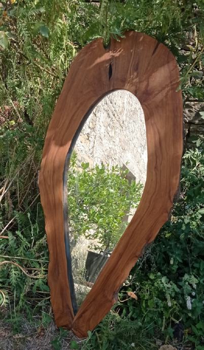 Prekrasno ogledalo ovalnog oblika u drvenom okviru-masline!