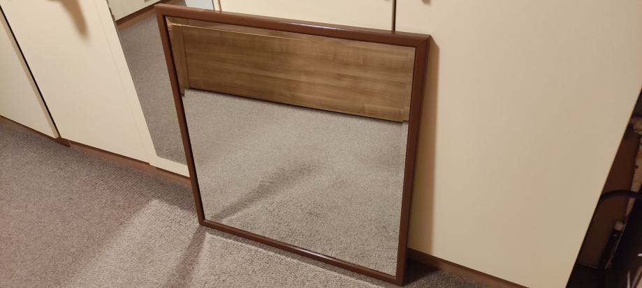 Prodajem ogledalo sa obrezanim rubom, dimenzija 76x76 cm, teško 11.5 kg, drveni okvir obojen u smeđu boju, stanje vidljivo na slikama, ne odgovara nam više u prostor.